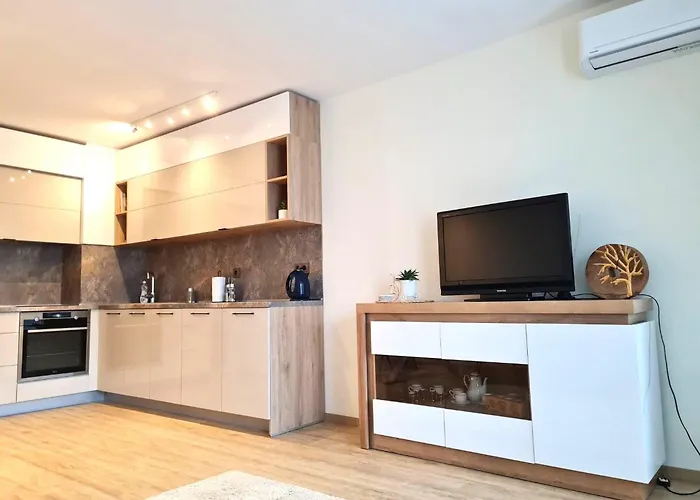 Populära attraktioner i området inkluderar Varna medicinska universitet, ungefär 2 km bort. Ungefär 10 minuters bilresa från den 60 m² stora lägenheten kan du besöka Romerska termerna i Varna. Havsträdgårdsparken ligger inom 3 km från den här lägenheten med 1 sovrum.